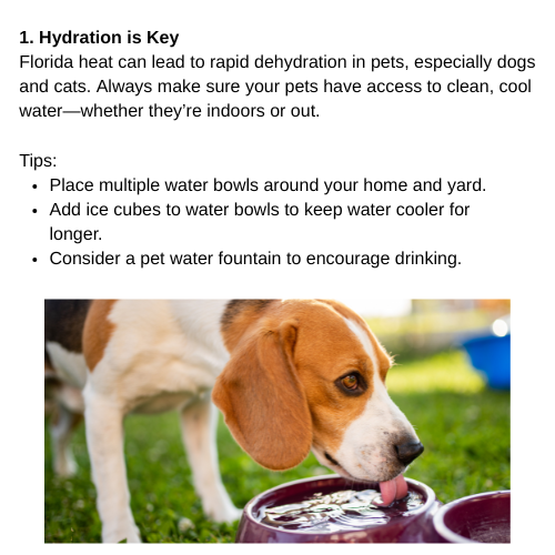 Florida summers are known for their intense heat, high humidity, and unpredictable storms. While many of us enjoy the sunshine and beach days, our furry companions may not share the same enthusiasm for sweltering conditions. As temperatures soar, it's crucial for pet owners to take extra precautions to ensure their pets stay safe, comfortable, and healthy. Here’s your essential guide to pet safety during Florida’s summer months.